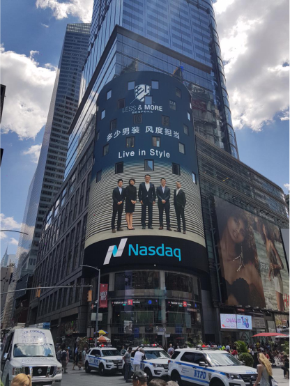 首家登上紐約時代廣場納斯達克巨幕的中國服裝定制品牌