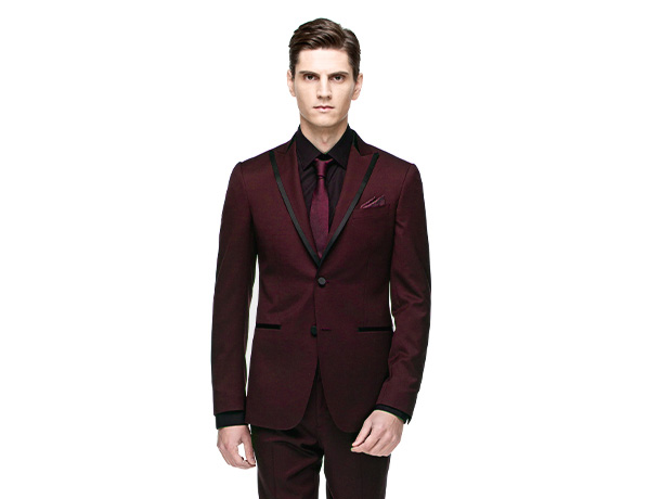 酒紅色領拼邊戧駁領禮服套裝