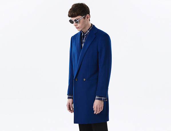 藍色素色雙排扣西裝大衣