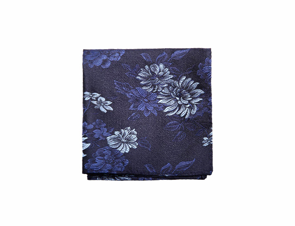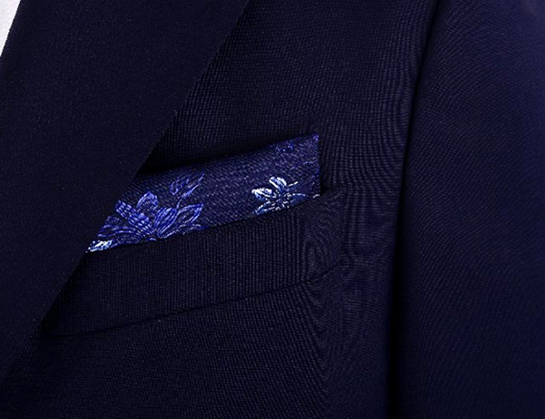 深藍色花色時尚口袋方巾