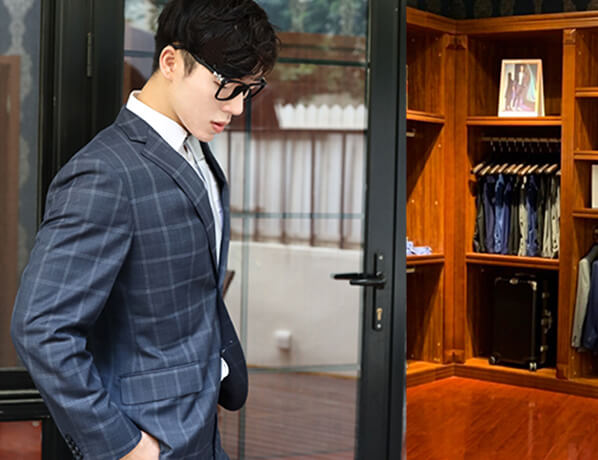 深灰色格子西服定制